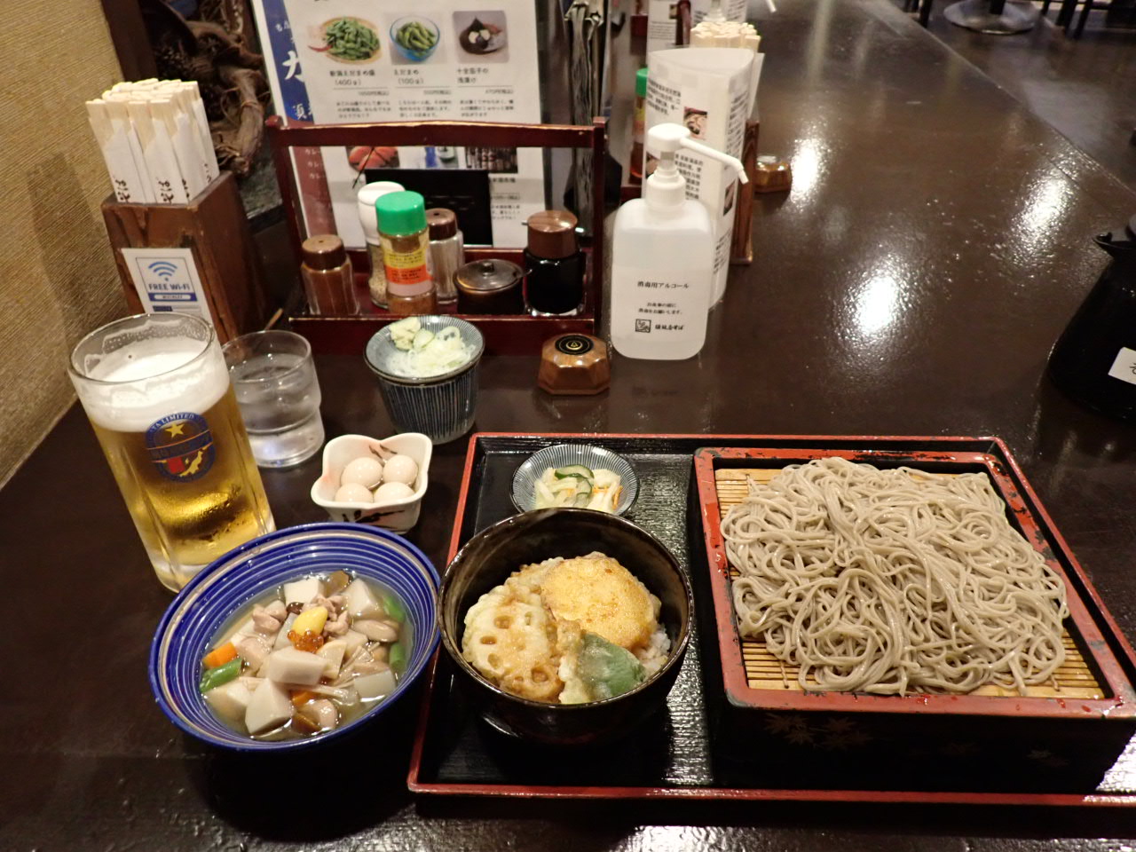 夕食は近くの「須坂屋そば」というそば屋で、「もりそばと野菜天丼のセット」と新潟の郷土料理「もっぺ」を注文。