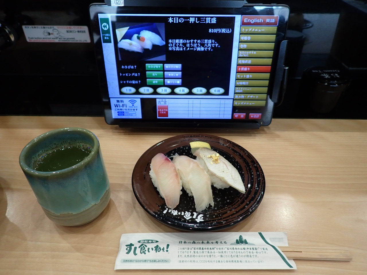 「産地直送三貫盛り」や「本日の一押し三貫盛り」を注文すると、すぐに握ってくれました。