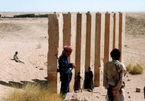 シバの女王ビルキスの宮殿跡。紀元前8世紀、マーリブはシバ王国の首都として栄華を極めた。現在のマーリブは中央政府の力も及ばない無法地帯。銃を持った兵士が護衛に付く。